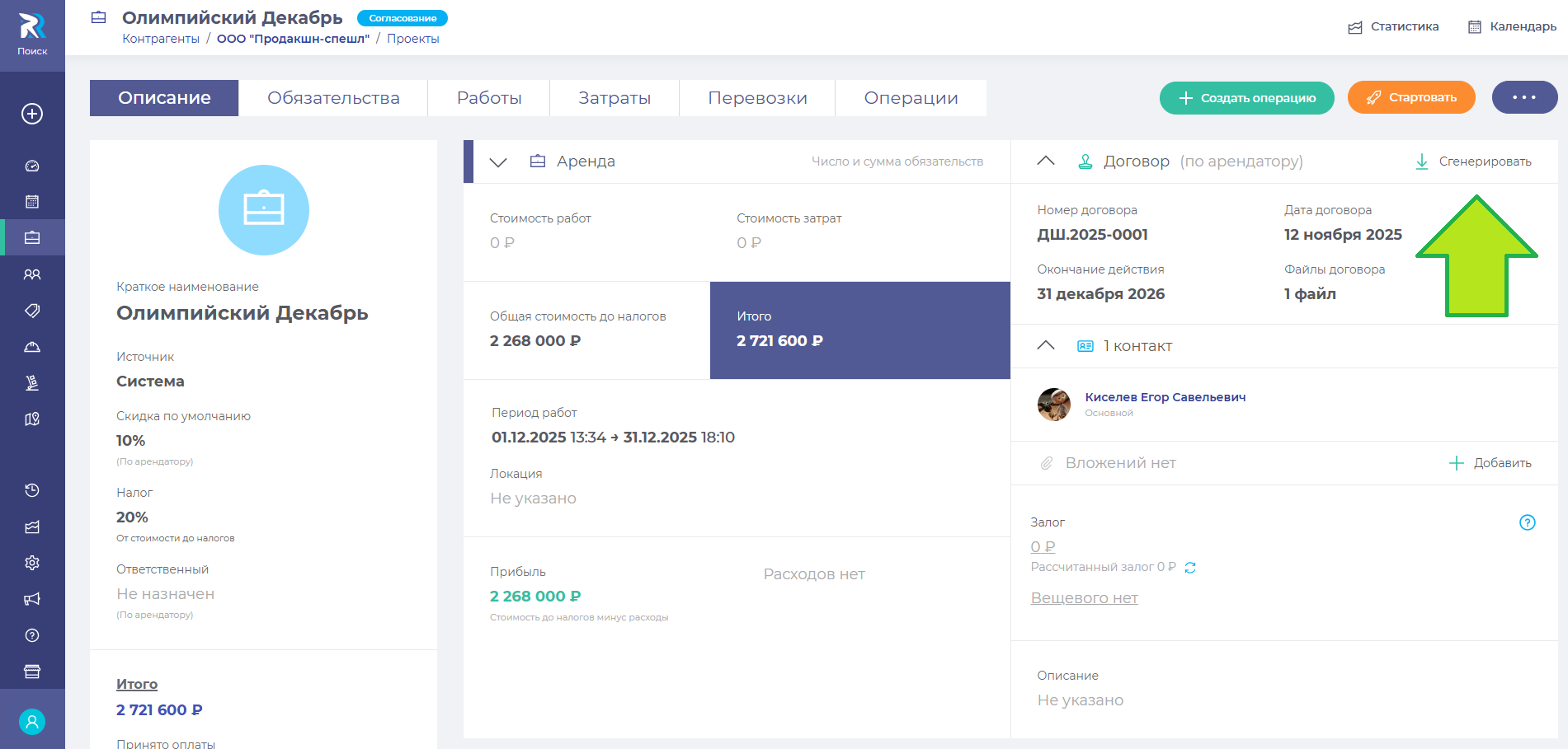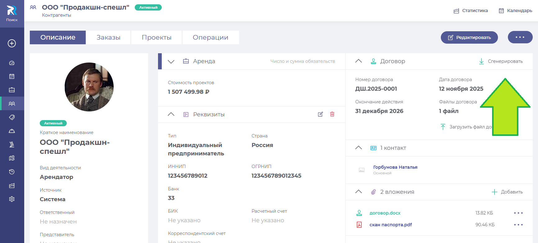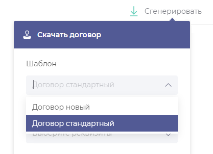 Для проекта: - Нажмите на кнопку Сгенерировать договор