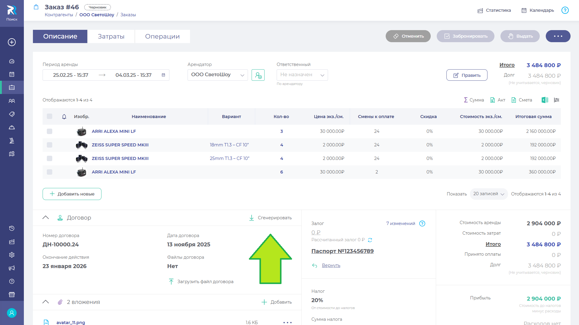 В RentRabbit есть функция генерации и автоматической выгрузки заполненного договора для арендатора, заказа и проекта.