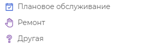 При создании нового обслуживания доступны следующие причины: