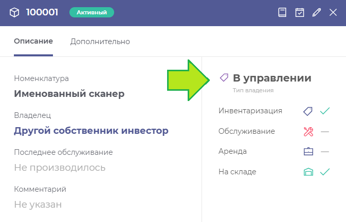 - Должен быть осуществлен возврат экземпляра с типом владения В управлении (данный тип описан ниже).