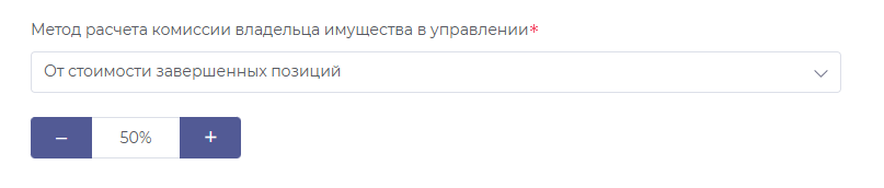 2 Найдите к редактированию и найдите настройку Метод расчета комиссии владельца имущества в управлении