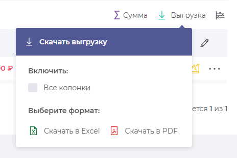 3 Далее вы можете выгрузить все отображаемые записи в Excel через кнопку Выгрузка, причем в выгрузку попадут только те колонки, которые отображаются в списке - вы можете их перенастроить. Выгрузку можно отправить владельцу оборудования, как подтверждение на каких проектах его оборудование сколько заработало за прошлый месяц;