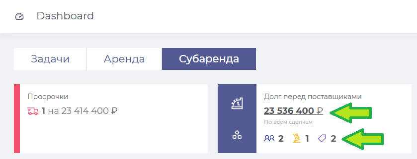 Функционал, описываемый в данной статье, доступен только при включенном модуле Субаренда