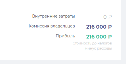 От этой суммы мы возьмем процент комиссии владельца, указанный в настройках, он равен 50%, получим 125 ₽.