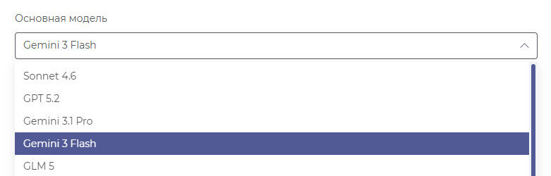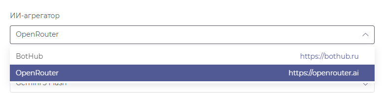 Откройте выпадающий список в поле ИИ-агрегатор, в нем отображаются доступные на данный момент агрегаторы